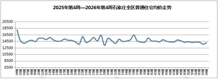 根据世联监测显示,2026年第4周,石家庄全区新建普通住宅均价14007元/㎡,环比上升3%。