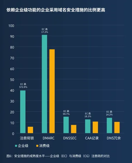 - 注册商类型成安全分水岭:企业级注册商用户域名锁采用率(53%)是消费级(9%)的6倍,黑客正大量利用消费级平台劫持域名。