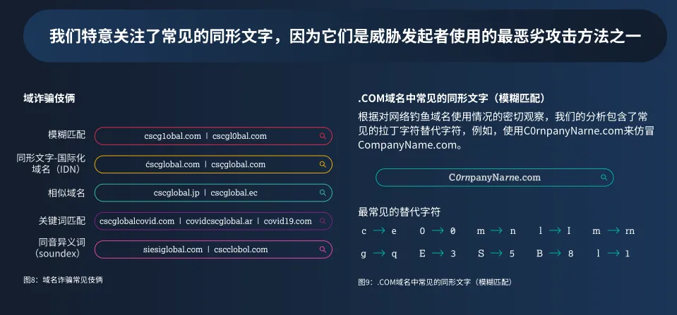 - 同形异义域名(Typosquatting)威胁激增:88%的仿冒域名由第三方持有,成为网络钓鱼主战场。
