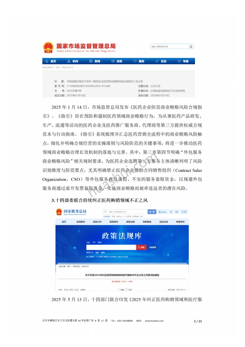 2025年,医药行业告别高速增长,规模以上制药企业营业收入呈波动下行,利润总额降幅逐步收窄,集采深化与合规成本上升是主要影响因素。监管层面,多部门协同推进反腐与合规治理,中纪委将医药行业列为反腐重点领域,市监局发布合规指引禁止借助服务商套取资金,新修订的《反不正当竞争法》细化商业贿赂监管规则,形成全方位监管网络。上市监管则聚焦推广服务费用的真实性与合理性,开展穿透式核查。