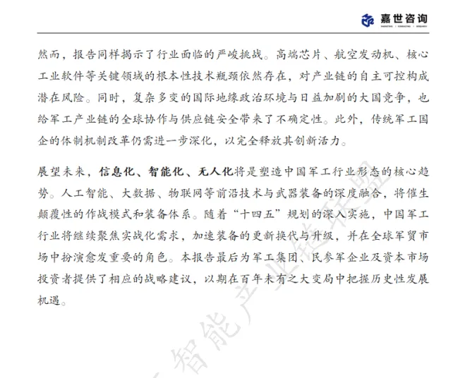 一个更加强大、开放、高效和富有创新精神的中国军工产业体系正在加速形成。在百年未有之大变局中,行业参与者必须既要保持战略定力,又要具备变革勇气;既要攻克核心技术瓶颈,又要深化体制机制改革;既要立足国内市场,又要拓展国际空间。唯有如此,方能在历史性发展机遇中实现跨越发展,为实现强国梦强军梦提供坚实支撑。