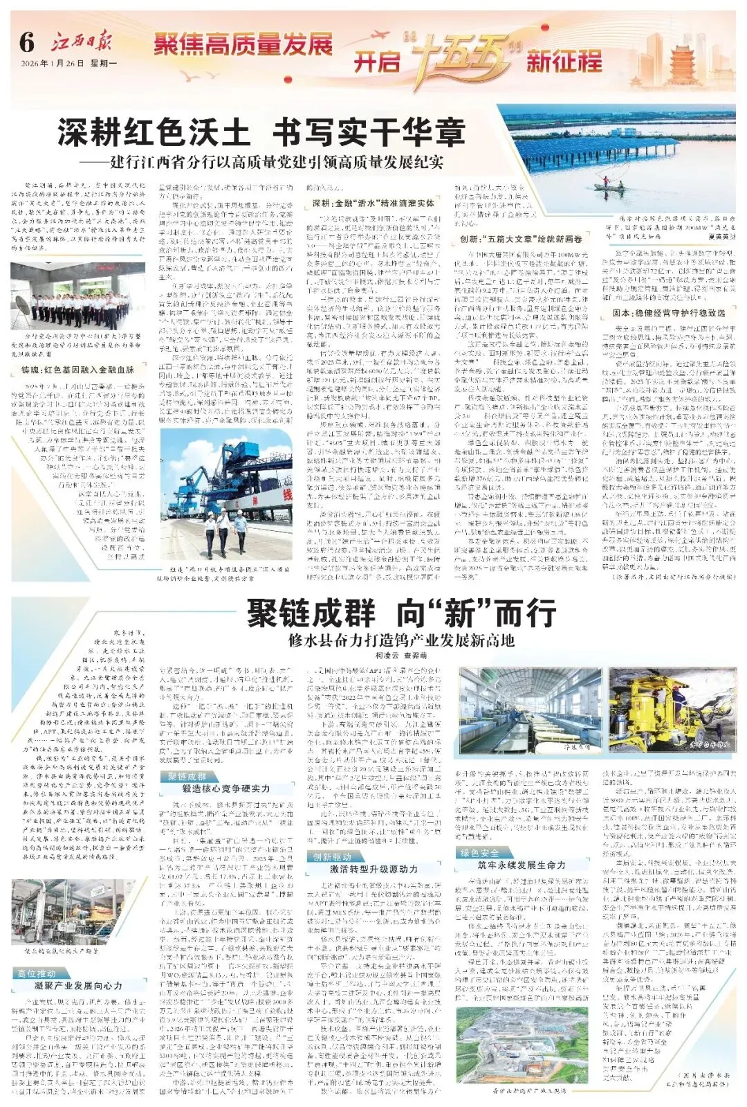 今日,《江西日报》“聚焦高质量发展,开启‘十五五’新征程专栏”刊发题为《聚链成群 向“新”而行》的深度报道,系统聚焦修水县近年来推动钨产业链高质量发展的实践路径与显著成效。文章重点介绍了公司在修水企业香炉山钨业和赣北钨业。