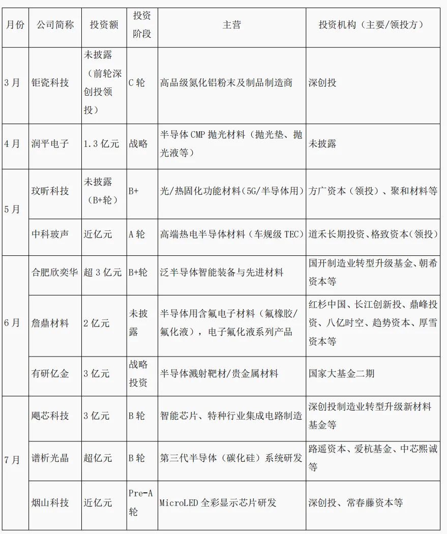 从上述列表可以看出,2025年半导体材料领域的投资呈现以下关键特征: