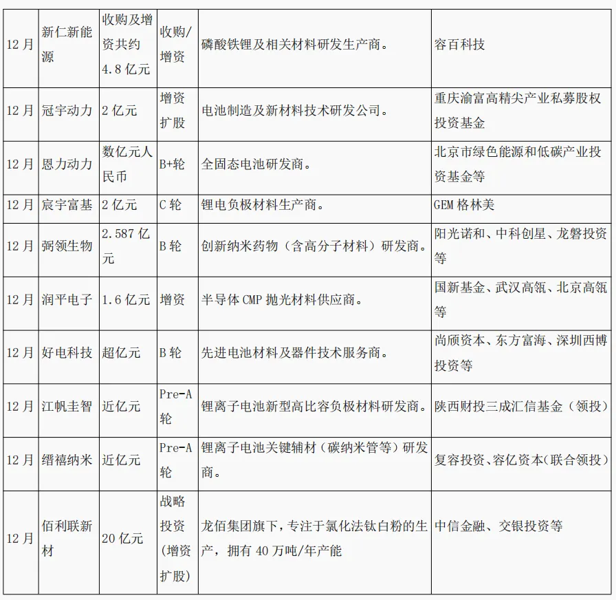 从上述列表可以清晰看出2025年新能源材料领域的几大投资特征: