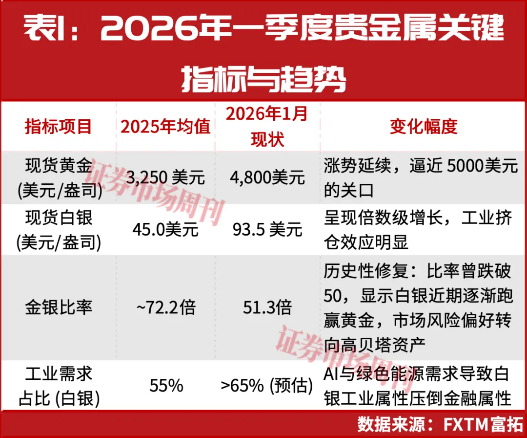 在去美元化趋势与实体经济需求的双重提振下,贵金属市场出现强劲涨势。黄金在刚刚过去的几周内再次创下新高,现货金价跨越了4800美元的关口,银价突破90美元/盎司。