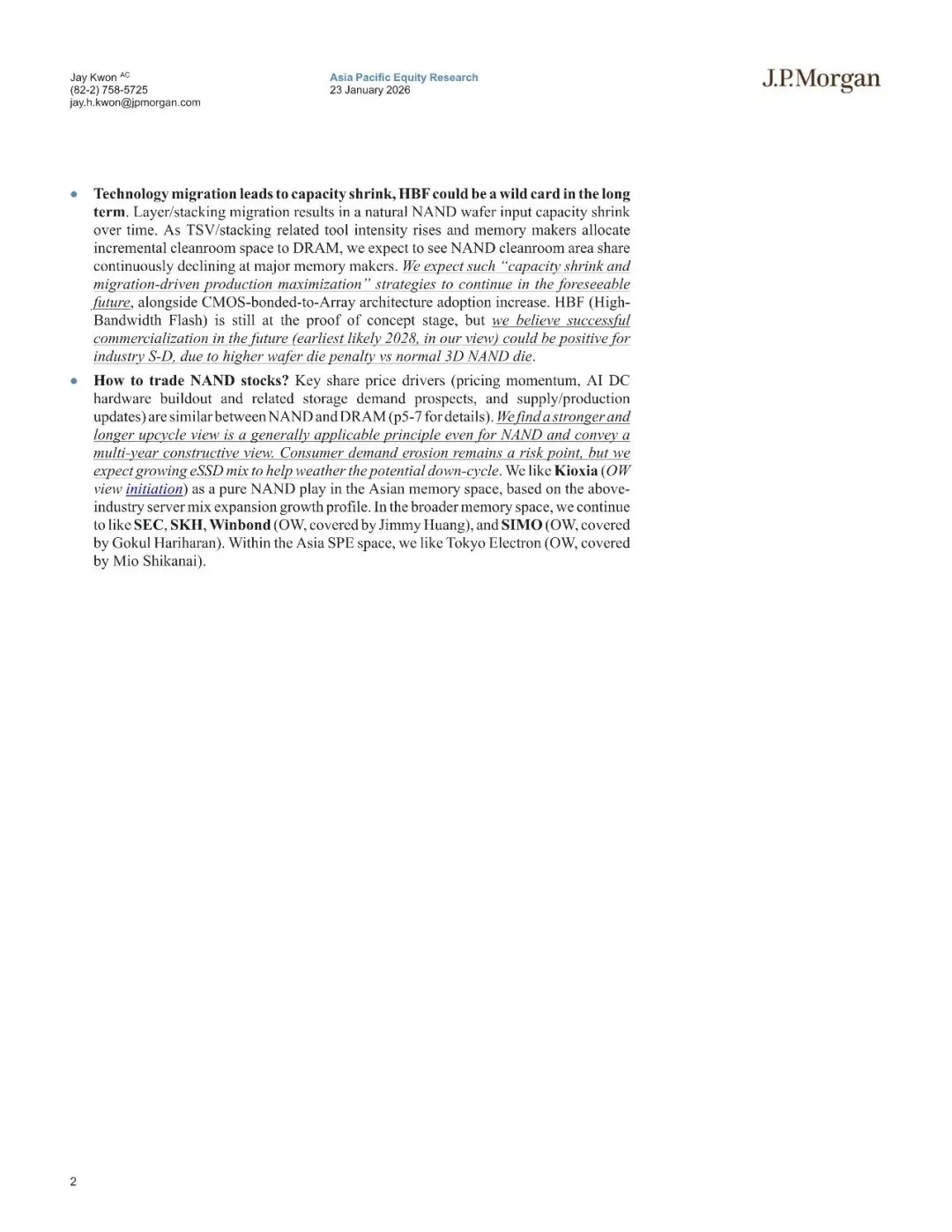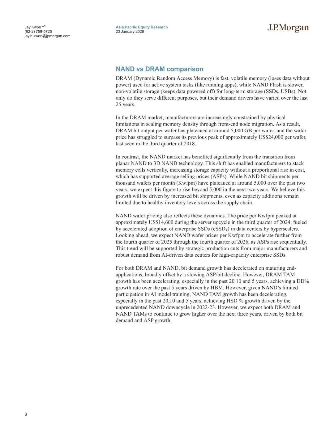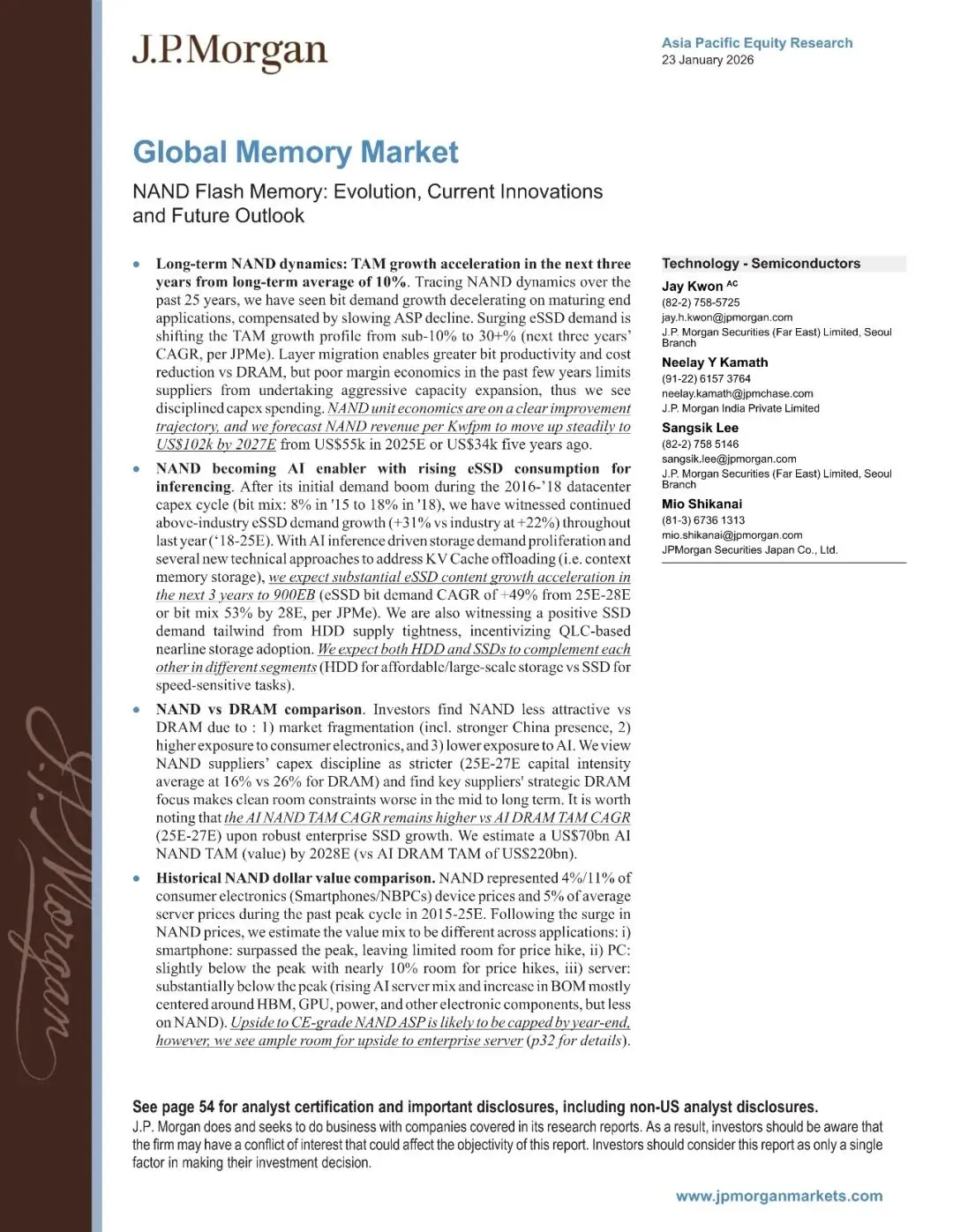 报告名称:全球存储市场2026年展望 出 品 方:摩根大通