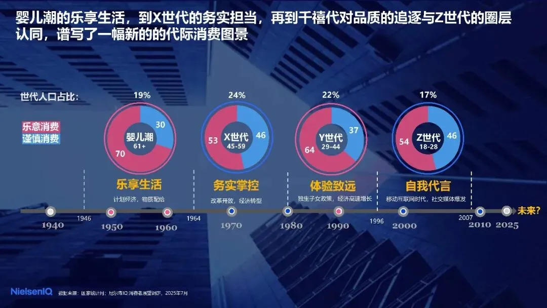 代际差异正成为解锁消费增量的关键密码。从婴儿潮一代到 Z 世代,不同成长背景塑造了迥异的消费图景,,在消费态度上呈现出鲜明的圈层特征。