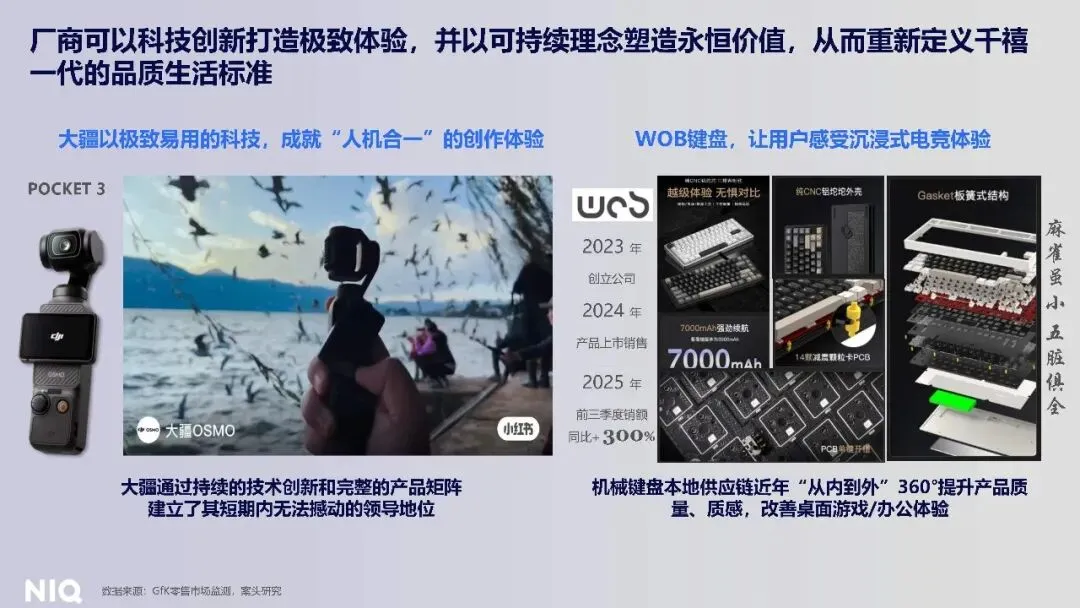 Z 世代作为 “人间清醒派”,人口占比 17%,31% 乐于消费,34% 保持谨慎消费,31% 选择精打细算。他们是批判理性的网络原住民,圈层认同优先于名人推荐,32% 对名人,KOL 推荐无感,高于中国整体 3 个百分点,而 72% 认为同院系、同社团的 “标签” 能提升可信度。他们爱尝新但不浪费,59% 至少每周都会发现新品,高于整体 3%,但为新奇产品支付溢价的意愿 36%,低于整体 9%;相反,76% 愿意为省时省力的产品支付溢价,高于整体 2%。圈层消费是核心特征,用圈层文化共鸣可以解锁 Z 世代 “为爱发电” 的付费意愿。
