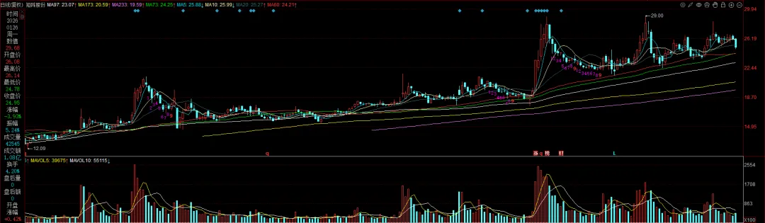 静态PE、动态PE、最新价分别为:133.30、48.93、24.95