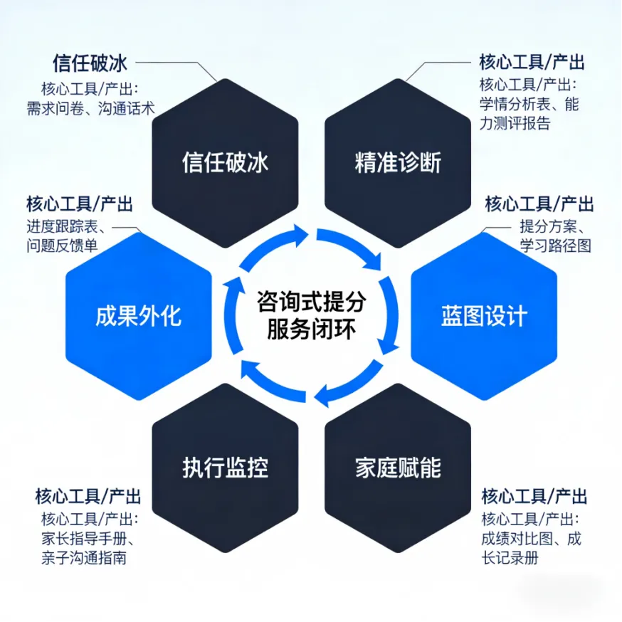 适合对象:时间紧迫、问题复杂、追求确定结果的初三/高三家庭定位:培养能交付以上所有服务的专业教练