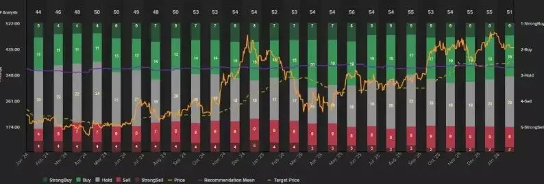 特斯拉目前的市盈率高达201倍。华尔街分析师给出的平均目标价为389美元,较周五收盘水平有13.4%的下跌空间。估值担忧也体现在分析师评级中,51位分析师中有30位建议“持有”或“卖出”。
