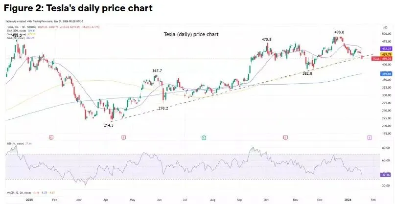 自2025年4月触底以来,特斯拉股价一直处于强劲上涨趋势。在近期回调之前,其股价已经上涨超过100%。