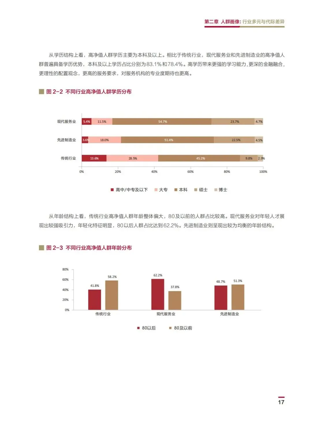 高净值人群结构呈现“传统行业稳固、新兴行业年轻化”特征,且代际分化深刻影响行为模式: