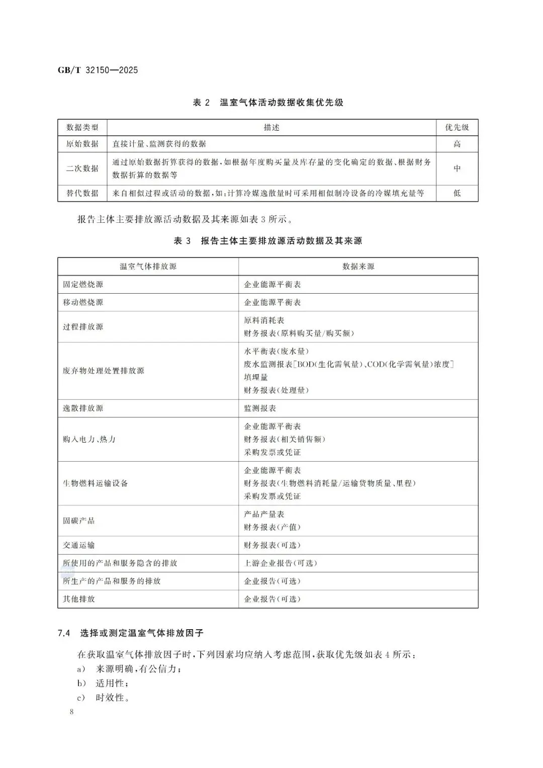 d) 增加了报告主体使用外购非化石能源电力排放因子确定的要求(见7.5.6);