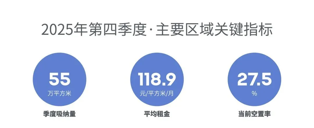 庞大的存量与新增供应仍将深化买方市场特征,租金与空置率承压格局难以快速扭转,去化更多依赖现有企业的空间优化与产业升级。