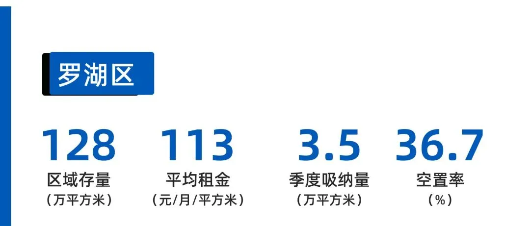 2025Q4罗湖区甲级写字楼市场呈 “指标温和改善但压力仍存” 态势。核心数据方面,存量维持128万㎡,无新增供应,平均租金下探至113.3元/㎡/月(环比降7.7%),空置率收窄至36.7%(环比降2.5个百分点),吸纳量达3.5万㎡(环比增8.4%)。