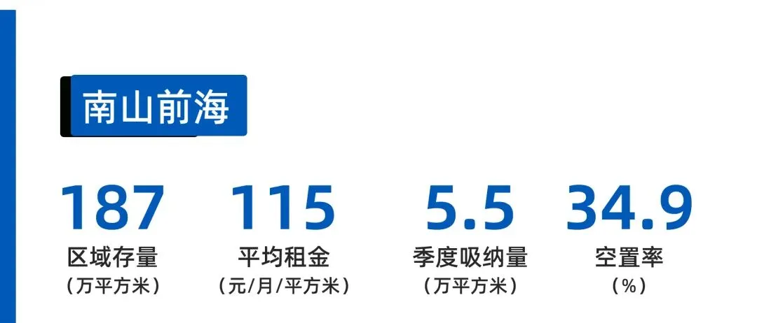 但供需平衡仍待优化:季度平均价格114.8元/㎡/ 月,同比下降13.5%;空置率维持34.9%的高位。虽跨境相关需求增长,但新增供应分流客群,业主仍需通过适度降价维持去化,符合前海自贸区 “需求有支撑但供应压力未减” 的市场特征。