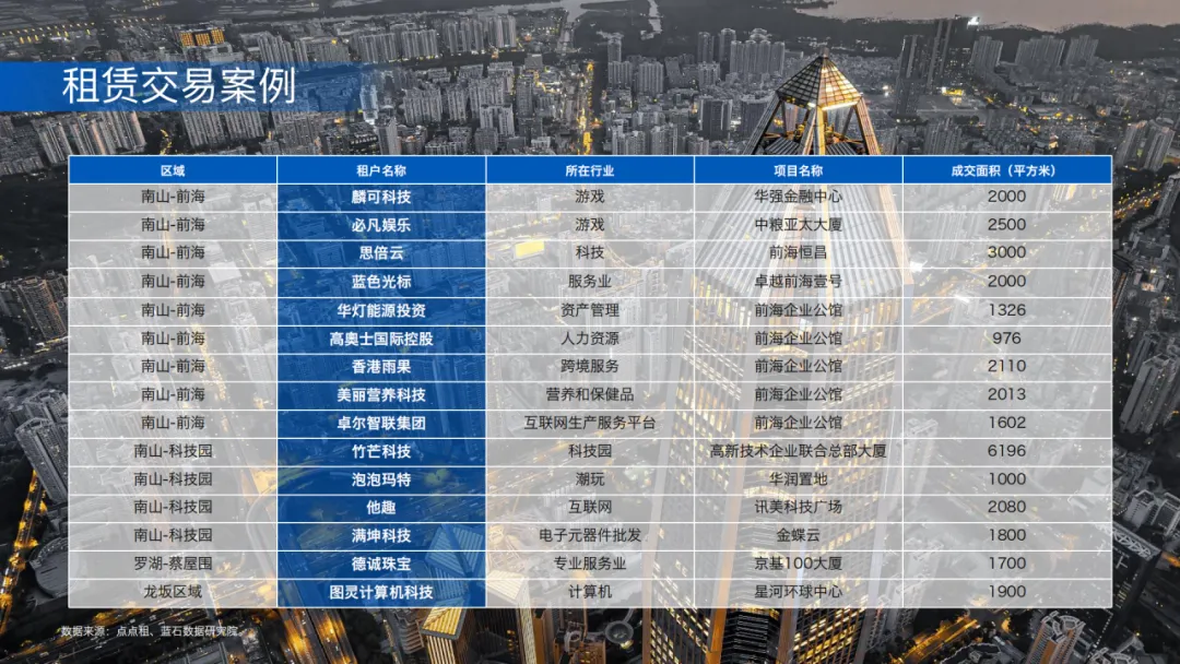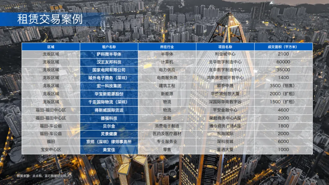 市场呈 “双核驱动、标杆引领” 格局:坂田星河WORLD(超20万㎡)、天安云谷(12万㎡)凭产业聚集优势领跑;龙华鸿荣源・环智中心等项目依托枢纽经济贡献核心交易量。