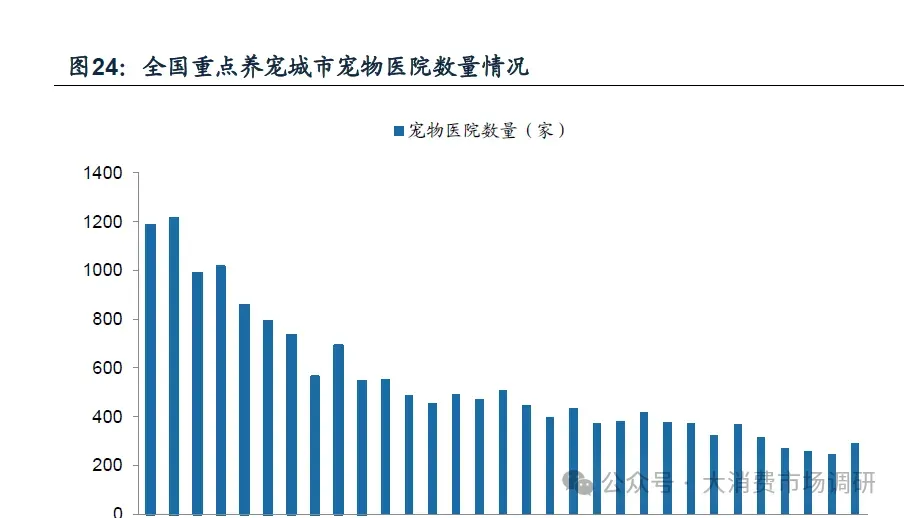 二线城市医疗资源相对紧张,宠物医院存在较大发展机会。据行业白皮书,2023年三线及以下城市新晋宠主增速达到47%,远超一线城市增速,随着低线城市宠物饲养量快速提升,对宠物医疗需求将随之显现。从医院密度看,2023年一线城市单家宠物医院的宠物覆盖数量约3218只,二线城市单家宠物医院的宠物覆盖量达到7545只,三线及以下城市覆盖量约3063只/家,二线城市宠物医院分布密度较低,主要由于二线城市养宠人群庞大但医院保有量相对偏少,我国二线城市宠主数量占全国的比例达41%,但宠物医院仅占全国的22%,二线城市宠物医院数量存在较大提升空间。