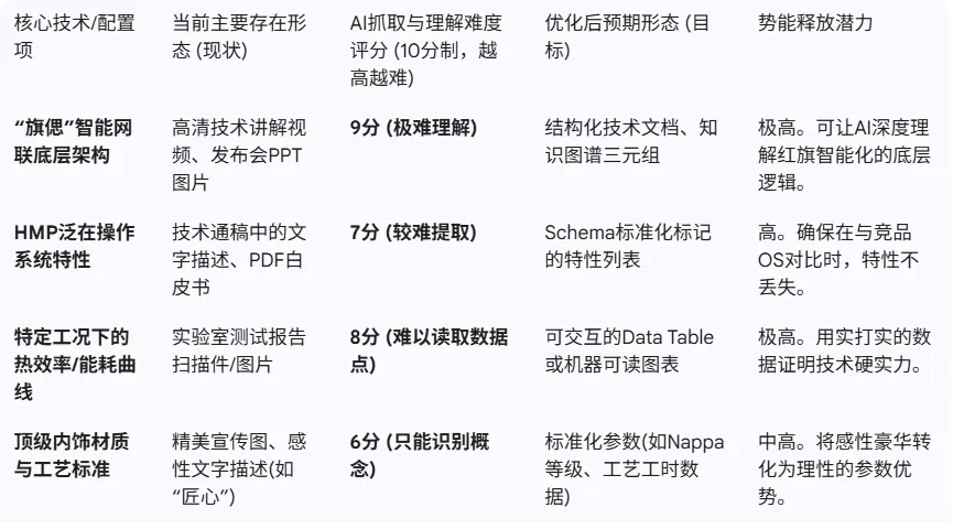 我们不需要发明新的优势,只需要通过“数据结构化工程”,将红旗既有的强大实力,翻译成AI听得懂的语言。