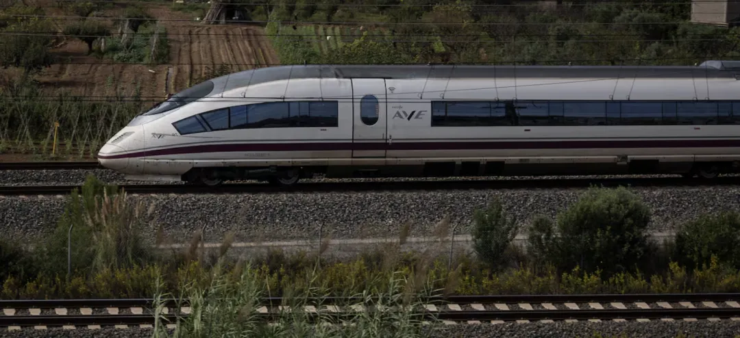2023年10月,一列AVE高铁列车驶过巴塞罗那El Papiol郊外。(来源/Fuente: Albert Garcia/El País)