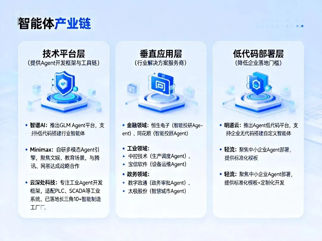 垂直行业智能体解决方案,如工业生产调度、医疗病例分析、政务审批代办等。