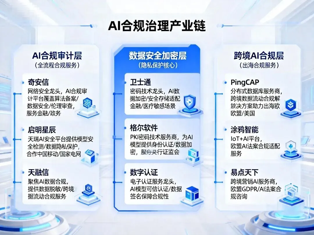 AI合规审计工具、数据安全加密技术、跨境AI服务合规解决方案。