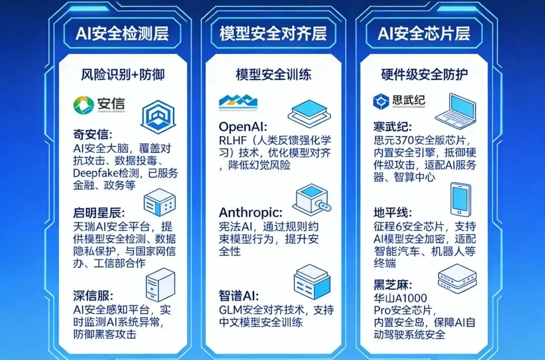 AI对抗攻击检测工具、Deepfake鉴别系统、模型安全对齐技术服务商。