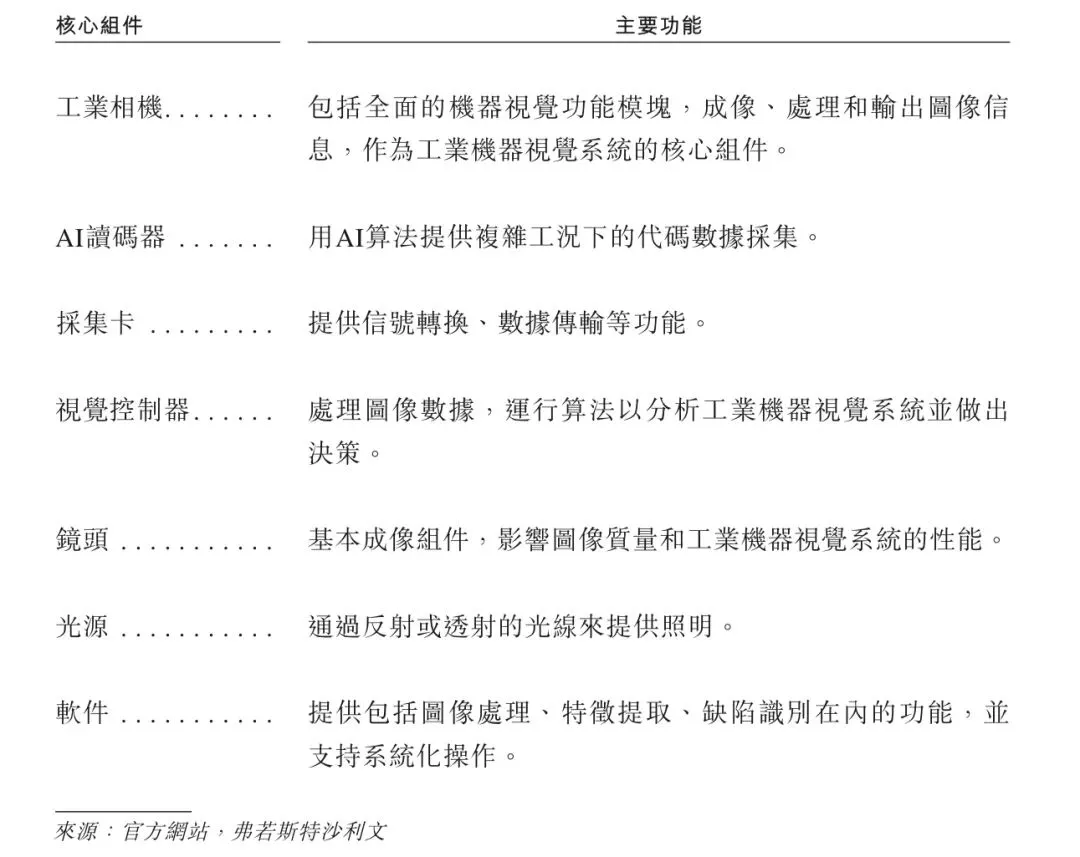 2.1 工业机器视觉核心组件及产品的定义