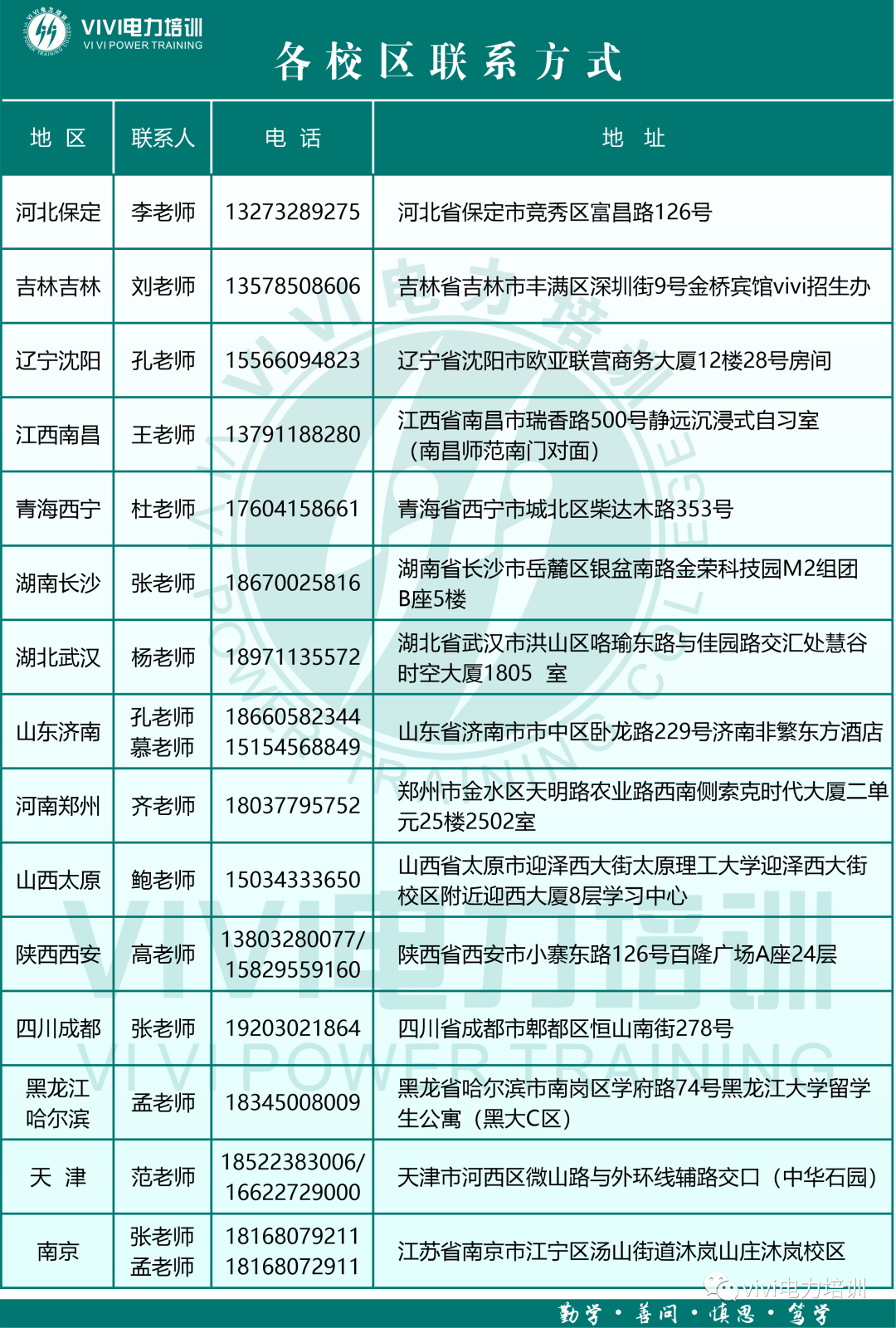 教师团队由vivi的全职老师和华电等高校聘请的教师组成,每个授课老师都经过校长严格选拔,均精研国网考试培训多年,教学质量有保障。