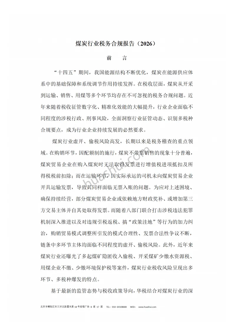 《华税:煤炭行业税务合规报告(2026)》聚焦煤炭行业税务合规现状与趋势,结合2025年行业动态、涉税案件及监管环境,系统解析多环节涉税风险并给出合规指引。