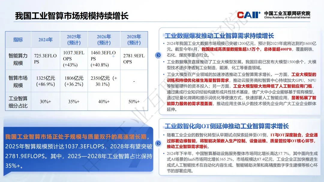 市场规模快速增长:2025年智算规模预计达1037.3 EFLOPS,工业智算占比持续提升。