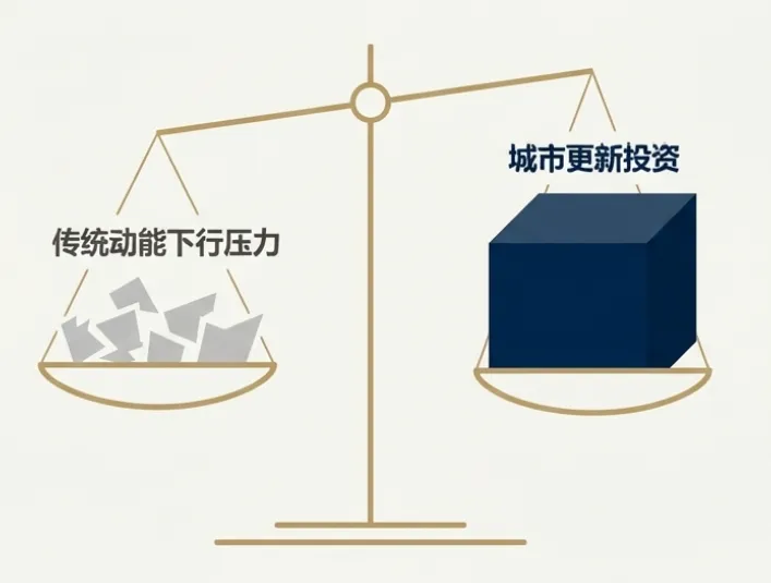 在全球经济复苏乏力、国内经济面临下行压力的背景下,城市更新涉及建筑、建材、设计、运营等多个产业链,投资体量巨大,能够有效拉动固定资产投资,创造大量就业岗位,对冲传统基建和房地产开发投资的下行压力 。