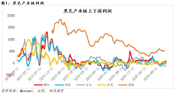 产业链利润结构:短期黑链仍处于利润传导不畅状态,吨煤利润回升,而吨焦亏损略有所扩大,钢厂即期利润表现分化。基差:现实需求下降,宏观尚有提振,螺纹钢基差走弱,热卷盘面维持升水状态。绝对估值:螺纹05合约价格介于华东独立电炉的谷电成本与平电成本之间。鉴于建材需求预期偏弱,当前价格估值中性略偏高。驱动:市场情绪带来提振,但需求偏弱预期制约反弹空间供需:供需双双收缩,矛盾仍在积累。铁水产量维持低位,钢材需求同步回落,库存再度由降转增(或进入累库阶段)。从需求驱动角度来看,需求驱动总体偏弱:建筑项目资金改善有限,利润驱动不足,制造业补库力度或较为有限,钢材出口也存在下降预期。成本:原料补库进程尚未结束,成本支撑依然存在。但需警惕补库结束后,若钢厂复产缓慢,可能带来成本下行风险。总结与展望:当前大宗商品市场情绪乐观,PPI回升预期强化,推动钢材估值上行。从钢材自身供需看,短期现实矛盾不大,矛盾仍需时间累积,成本支撑仍存。然而需求偏弱的预期尚未扭转,或限制盘面反弹高度。操作上,淡季行情中宏观预期及市场情绪主导,建议以关键支撑位为参考,短线逢低做多为主(螺纹钢05合约周度运行区间参考3100-3200)。从黑色产业链利润角度来看,短期黑链仍处于利润传导不畅状态。截止1月23日当周,吨精煤利润继续小幅回升;吨焦利润亏损略增;以螺纹热卷冷轧为代表的主流钢材品种吨钢即期利润表现有所分化(螺纹、冷轧环比有所下降,热轧利润持续改善)。