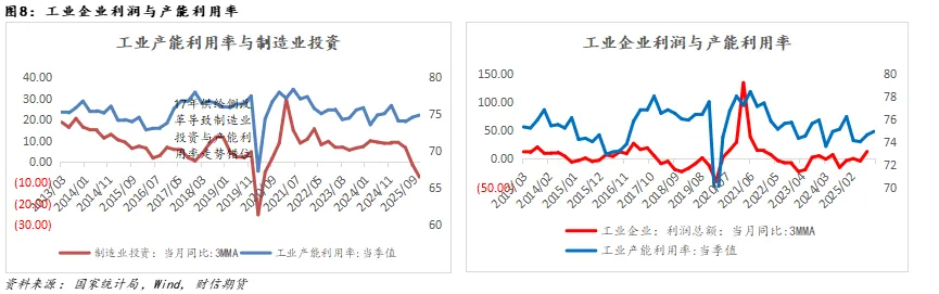 从钢材需求的驱动因素来看,整体改善动力仍然有待增强。地产销售及拿地面积对新开工面积指引仍较弱,地产新开工或维持低位;建筑项目资金到位率未能延续改善,其中非房建项目资金到位率连续3周下降。制造业投资产能利用率环比有所回升,但制造业单月同比仍处于下滑态势,或预示着利润驱动仍显不足,下游补库的力度或有限。