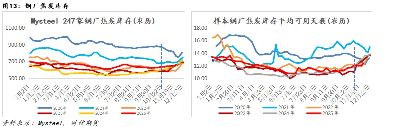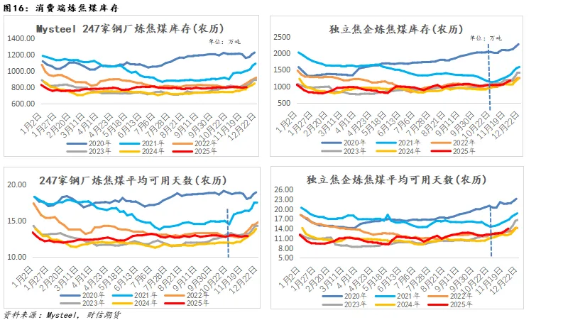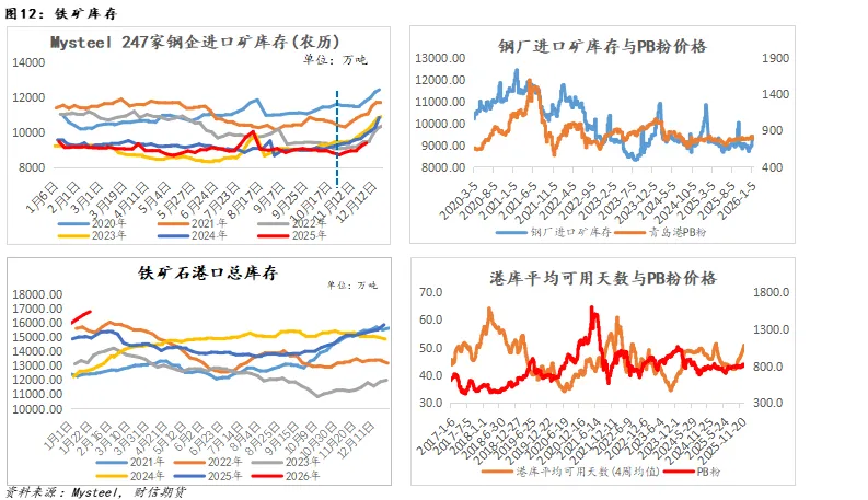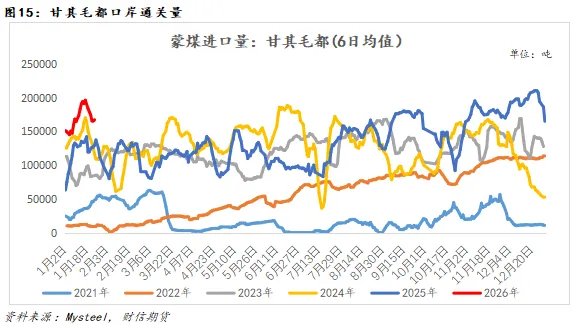 炼焦煤方面,蒙煤通关仍处高位,国内煤矿开工或将迎来下滑(春节前季节性下滑),供应或稳中有降。从补库角度来看,独立焦化厂原料炼焦煤补库空间或已不大,钢厂自有焦化厂仍有补库的空间。短期焦煤现货尚有支撑,但钢厂复产偏慢,补库预期有所弱化。
