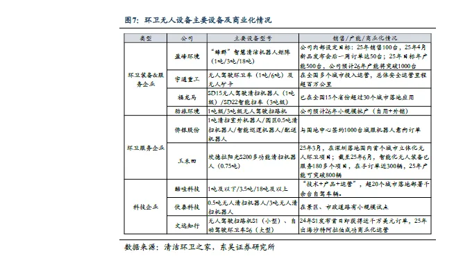 环卫无人公司新闻:全国多地无人环卫装备试点运营,竞争格局较分散。①盈峰环境:无人清扫车“盈峰小蜜蜂”于天津民园1920 街区投运,该车每小时清扫效率达7150 平方米,可连续工作3.5 小时,自投入使用以来日均清扫面积约2 万平方米。②福龙马:杭州萧山于2026 年1 月1 日引入首批SD22 智慧车辆,将逐步接管工人路、博学路、金慧路、惠学路道路区域的日常清扫工作;福建龙岩2025 年下半年开放智慧环卫运营示范区,中心城区环卫作业覆盖里程超100 公里,保洁面积突破200 万平方米。