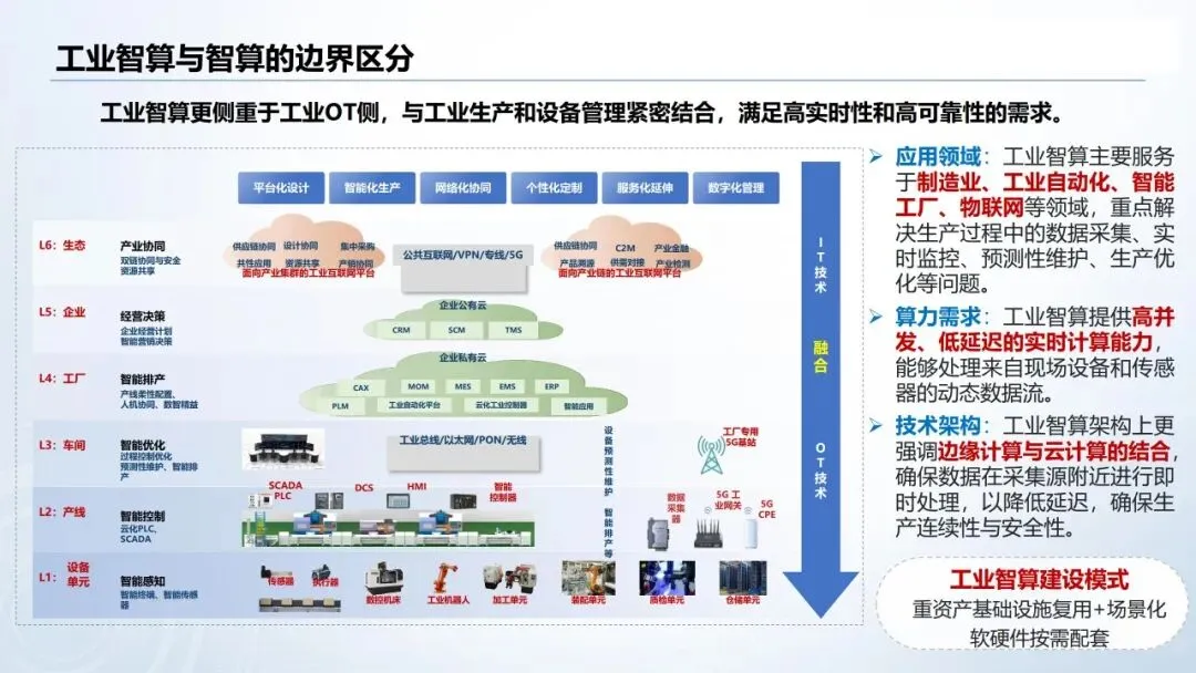 工业智算更侧重于工业OT侧,与工业生产和设备管理紧密结合,满足高实时性和高可靠性的需求。
