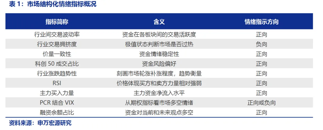 根据《从结构化视角全新打造市场情绪择时模型》文中提到的构建思路,目前我们用于构建市场情绪结构指标用到的细分指标如下表。