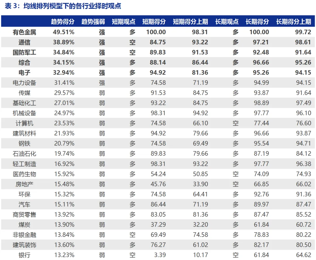 2. 其他择时模型观点:有色金属得分趋势领先,成长风格与小盘风格占优