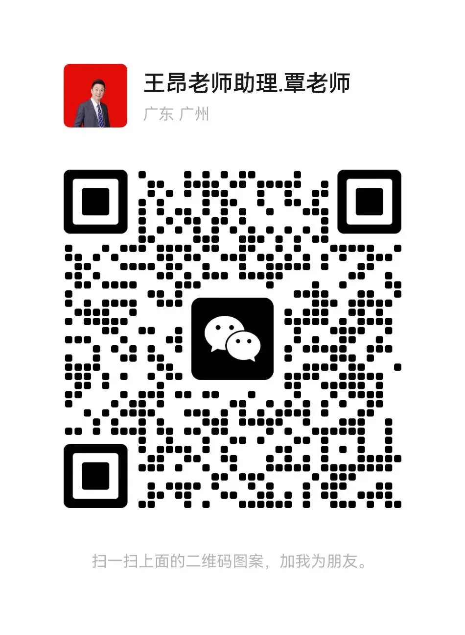 王昂老师助理-覃老师电话:15920595907微信:wa233266或扫码直接添加下方微信