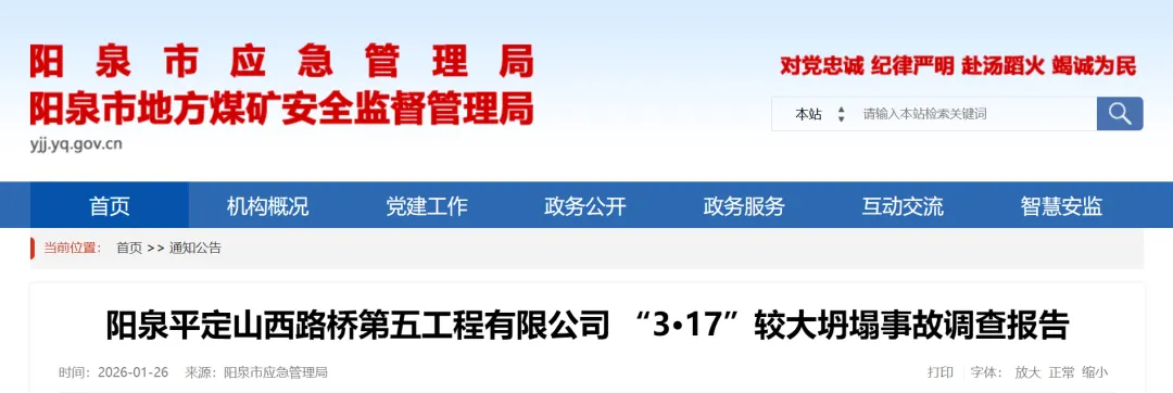 【调查报告】阳泉平定山西路桥第五工程有限公司 “3·17”较大坍塌事故调查发布!