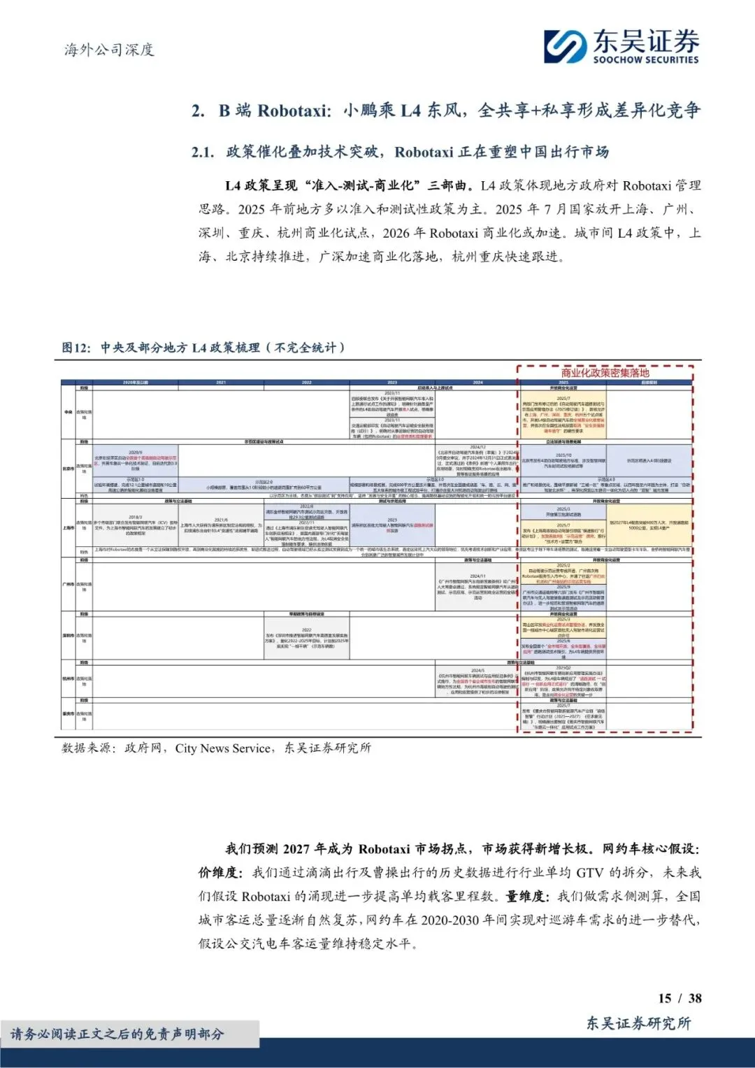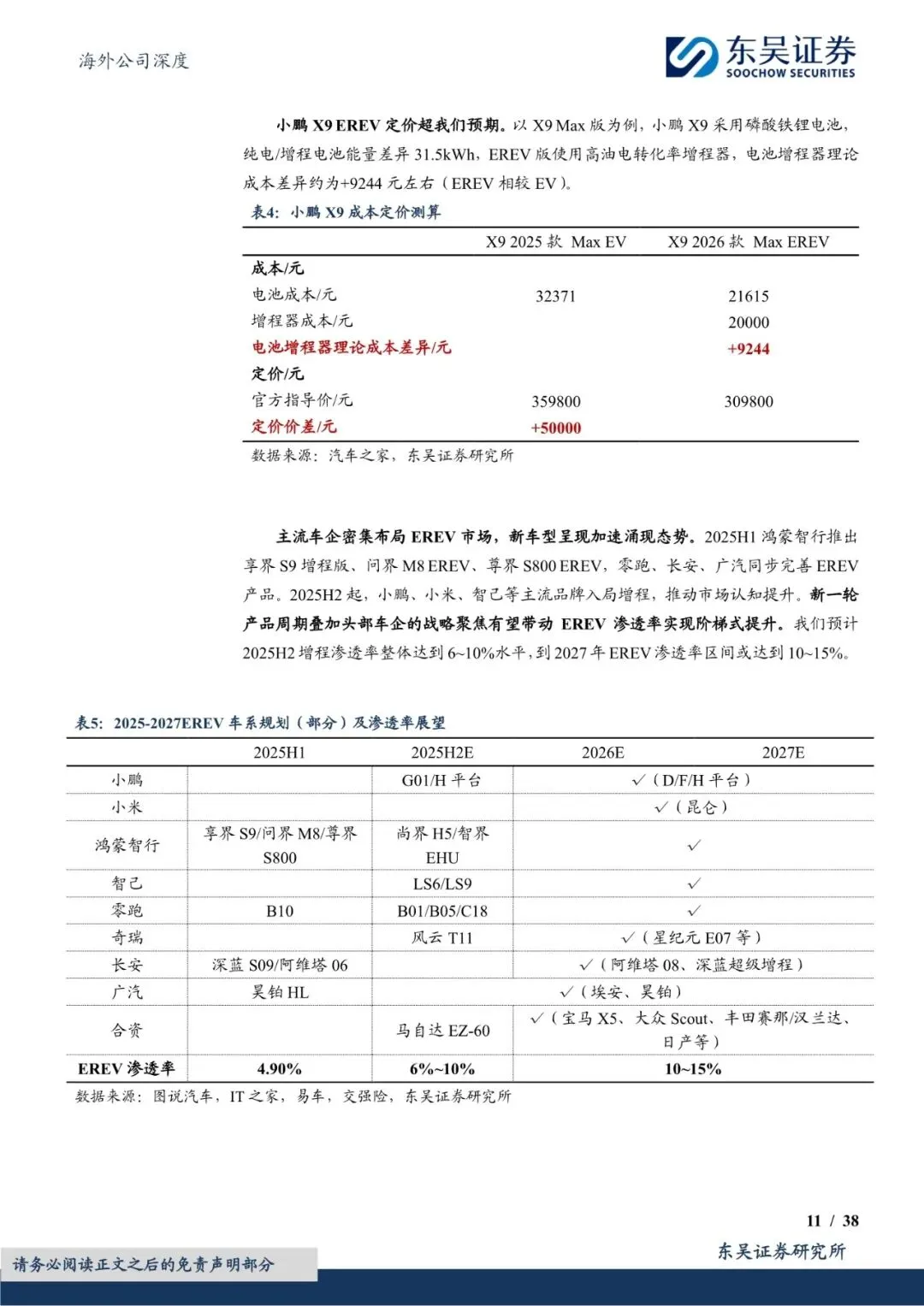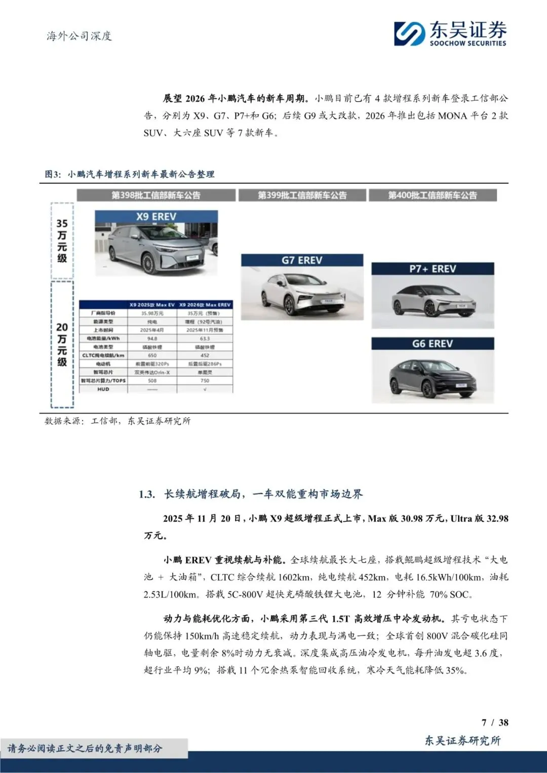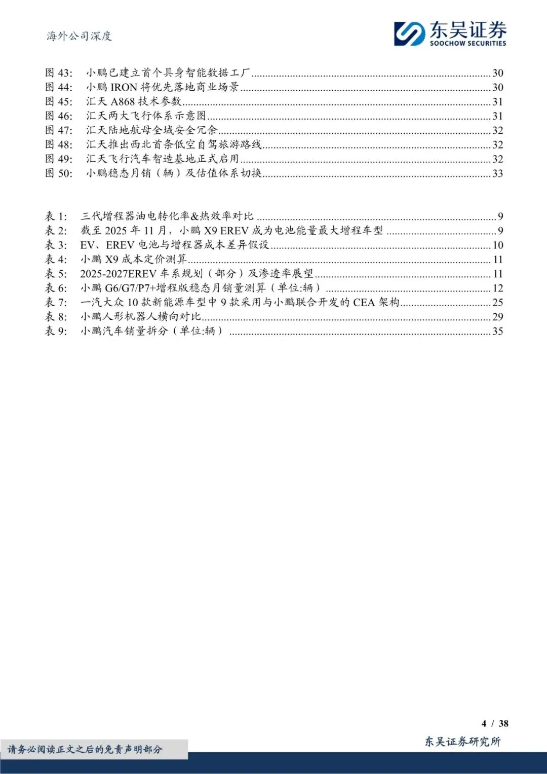 C端智能车部分,“增程+出海”助力小鹏迈入新阶段。端Robotaxi部分,小鹏乘行业东风,形成差异化竞争。大众合作部分,小鹏成功将自身定位升级为智能技术解决方案供应商。机器人部分,小鹏的核心竞争力源于与智能汽车业务的深度协同。飞行汽车部分,小鹏正式步入量产前夜。