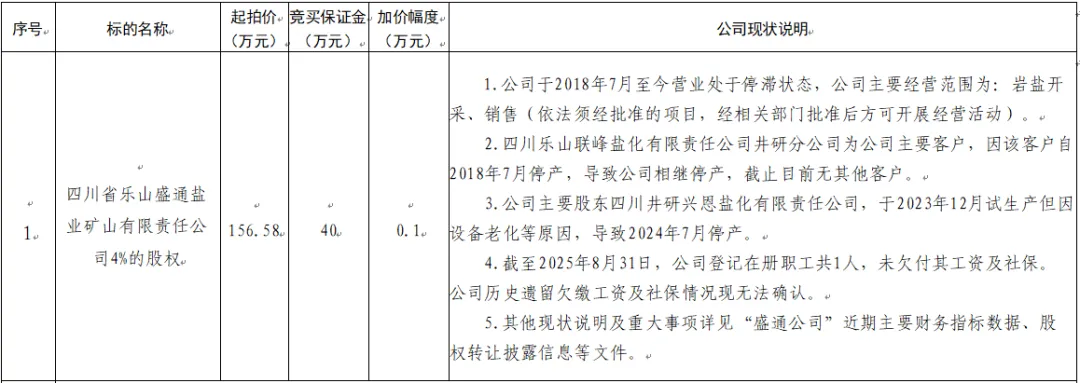 拍卖标的:盐业调查研究所持有的盛通公司4%股权(参见评估报告及专项审计报告)。