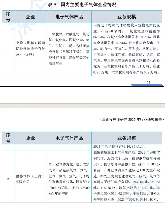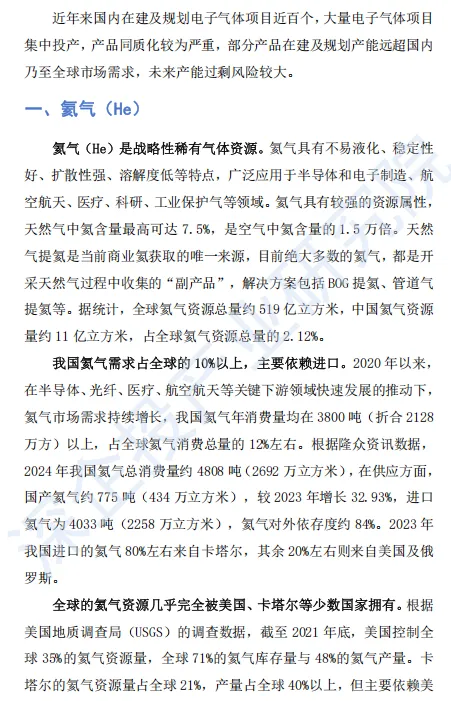 分享一份深企投发布的最新电子特气产业深度研究报告,内容包括电子气体(含大宗与特种气体)的基本介绍,行业技术难点、国内外差距与准入壁垒,全球及中国市场规模、竞争格局,最后聚焦 14 种重点产品的供需、企业布局及行业风险。报告指出,电子特气国产化空间广阔但部分产品产能过剩风险显现。