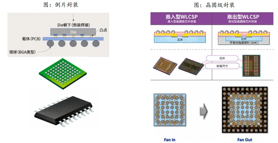 1.引线键合、倒片封装、晶圆级封装