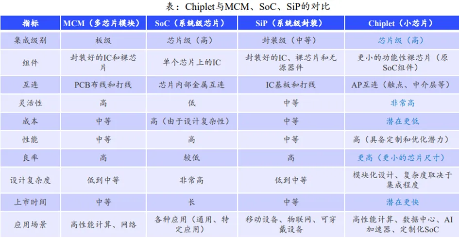 在半导体制程工艺不够先进的情况下,可通过Chiplet技术将制造环节的难度和成本转移到封装环节(芯片堆叠),发挥中国在封装工艺上的领先优势,助力实现弯道超车。