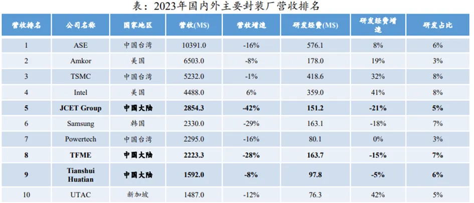 1.封装行业已形成稳定的全球竞争格局