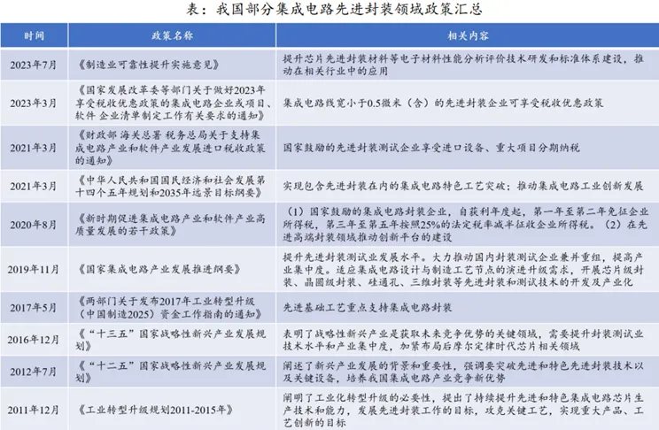 先进封装产业链及产业政策梳理
