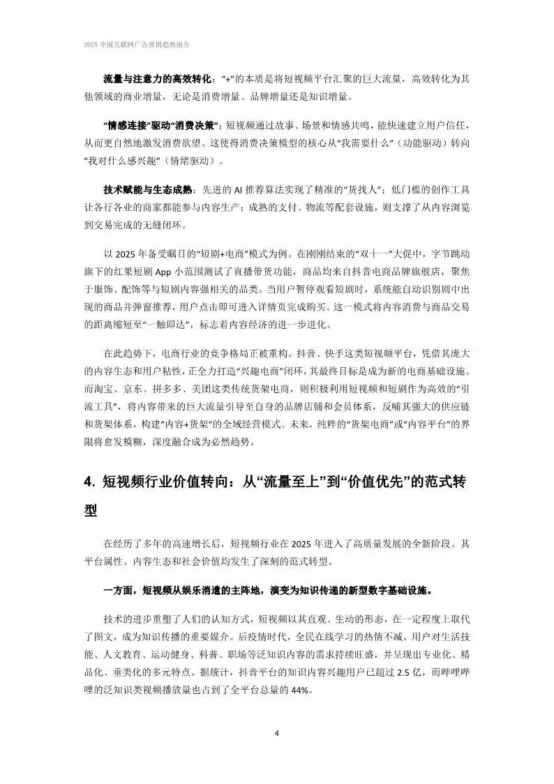 “短视频 +” 模式持续发力,与电商、本地生活等深度融合。抖音、快手等平台打造 “兴趣电商” 闭环,淘宝、京东等则构建 “内容 + 货架” 模式。短视频行业也从 “流量至上” 转向 “价值优先”,知识科普类内容用户偏好显著提升。